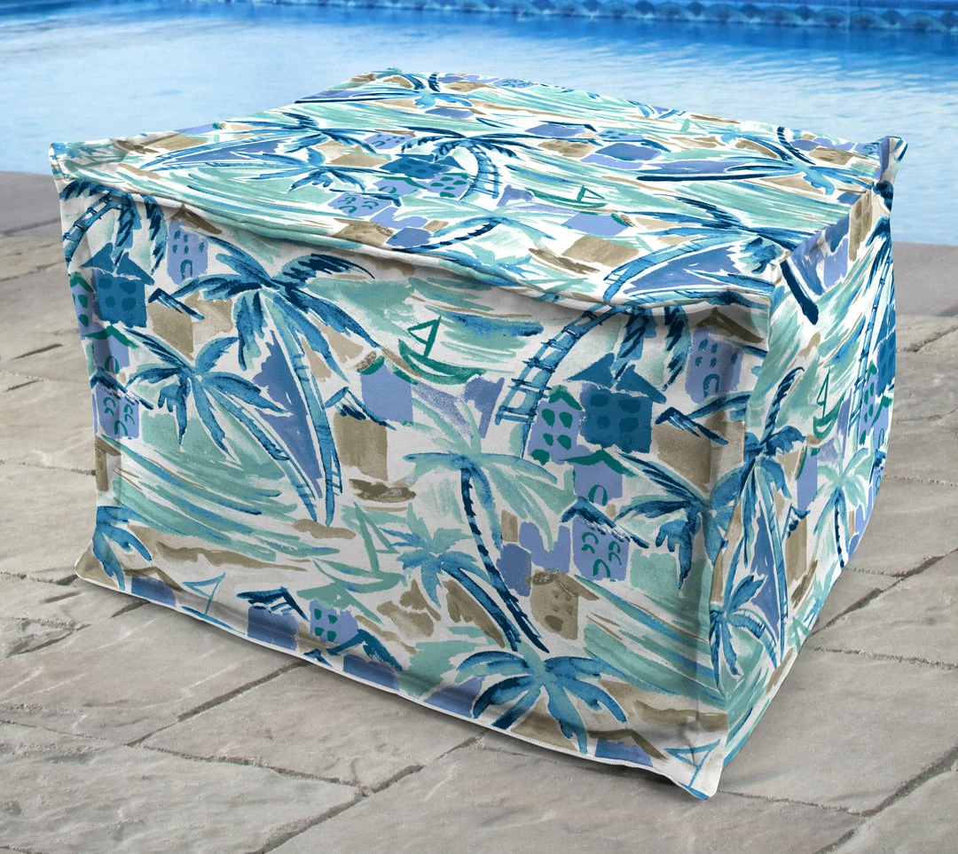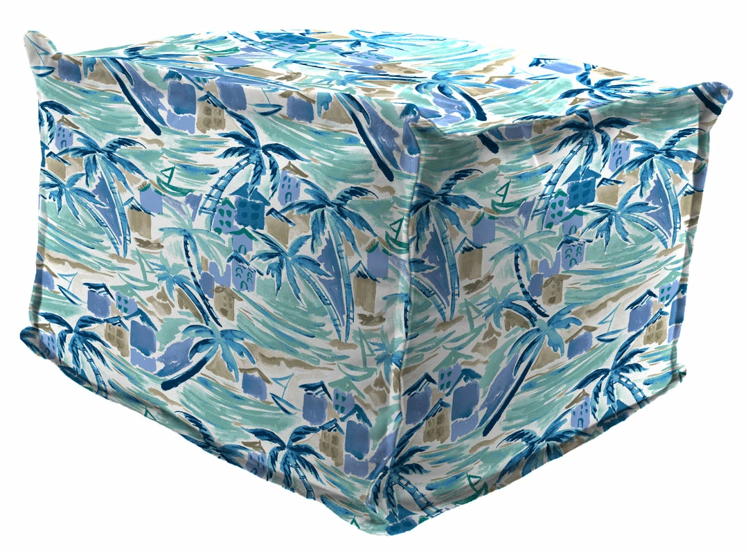 Outdoor boxed edge pouf ottoman cushion; UV protection allows cushion to withstand up to 500 hours of direct sunlight; Filled with dense polystyrene beads; Weather resistant polyester fabric that is engineered to withstand mold, mildew, & stains; Overall