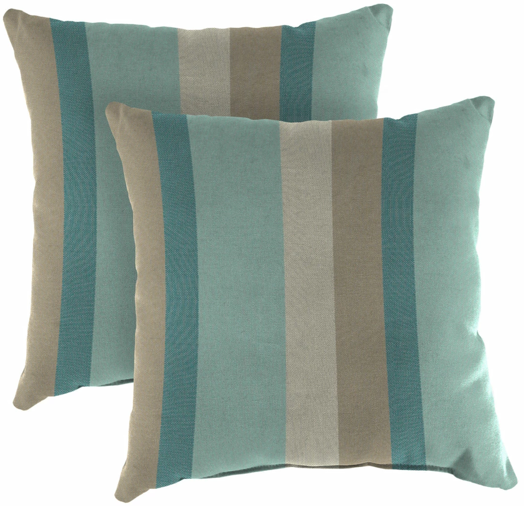 Add a touch of color to your outdoor seating area with this set of 2 Outdoor Throw Pillows from Jordan Manufacturing. Crafted from a quick-drying, UV- and water-resistant fabric, these outdoor pillows withstand sun exposure and the elements to last for the seasons to come. Stuffed with hypoallergenic polyester fiber fill for an extra cushy and soft experience while relaxing. From elaborate dining spaces to cozy three-season porches, these fiber-filled throw pillows boosts your space with carefree, laid-back style and total comfort.