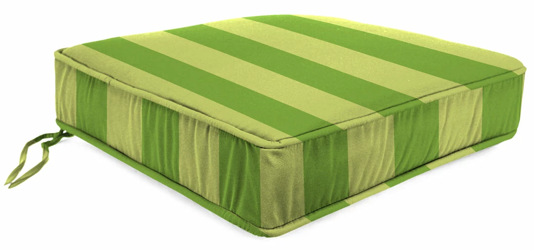 Outdoor Boxed Edge Deep Seat Cushion; UV protection allows cushion to withstand up to 500 hours of direct sunlight; Seat is filled with dense hypoallergenic polyester fiber; Made from weather-resistant polyester fabric that is engineered to withstand mold, mildew, & stains; Overall dimensions: 22.5Wx21.5Lx4H; Matching ties for a secure fit