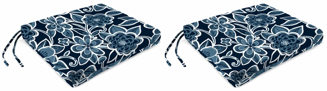 Bring optimal comfort to your patio chairs with the French Edge Seat Cushion from Jordan. Sold in sets of 2, these cushions are made with weather-, water-, fade- and UV-resistant fabric for ultimate durability and long-lasting use. They are stuffed with hypoallergenic polyester fiber fill for an extra cushy and soft experience while relaxing. Ties along the sides add convenience while ensuring the cushions stay in place when you’re sitting down. From elaborate dining spaces to cozy three-season porches, these fiber-filled cushions boosts your space with carefree, laid-back style and total comfort.