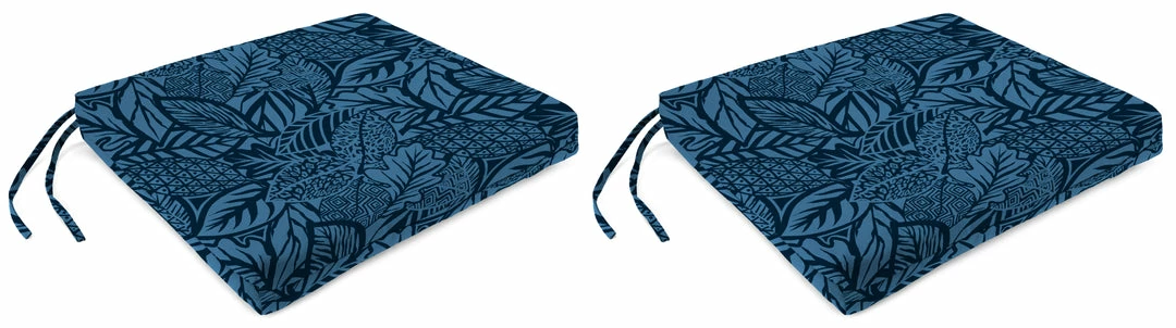 Bring optimal comfort to your patio chairs with the French Edge Seat Cushion from Jordan. Sold in sets of 2, these cushions are made with weather-, water-, fade- and UV-resistant fabric for ultimate durability and long-lasting use. They are stuffed with hypoallergenic polyester fiber fill for an extra cushy and soft experience while relaxing. Ties along the sides add convenience while ensuring the cushions stay in place when you’re sitting down. From elaborate dining spaces to cozy three-season porches, these fiber-filled cushions boosts your space with carefree, laid-back style and total comfort.