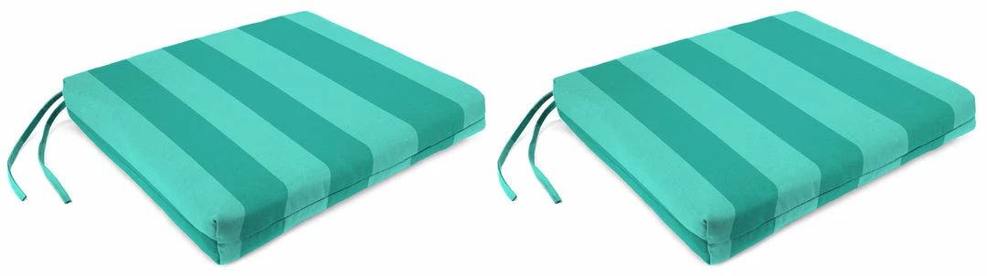 Bring optimal comfort to your patio chairs with the French Edge Seat Cushion from Jordan. Sold in sets of 2, these cushions are made with weather-, water-, fade- and UV-resistant fabric for ultimate durability and long-lasting use. They are stuffed with hypoallergenic polyester fiber fill for an extra cushy and soft experience while relaxing. Ties along the sides add convenience while ensuring the cushions stay in place when you’re sitting down. From elaborate dining spaces to cozy three-season porches, these fiber-filled cushions boosts your space with carefree, laid-back style and total comfort.