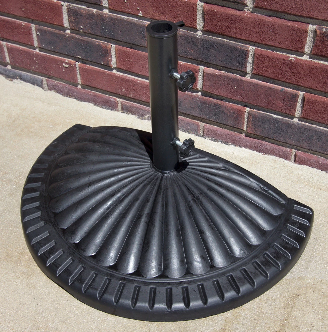 Complete any outdoor patio area with our decorative polystone half umbrella base. Great accent piece to pair with our half steel market umbrella or for smaller patios, balconies, and decks. Comes with an adjustable steel tube that fits most outdoor umbrella frames.