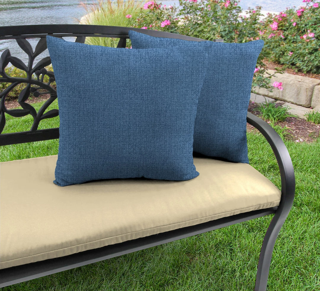 Outdoor Knife Edge 16″ Throw Pillows; Sold in Sets of 2; UV protection allows pillow to withstand up to 500 hours of direct sunlight; Filled with dense hypoallergenic spun polyester fiber; Weather resistant polyester fabric that is engineered to withstand mold, mildew, & stains; Overall dimensions: 16Wx16Lx5H