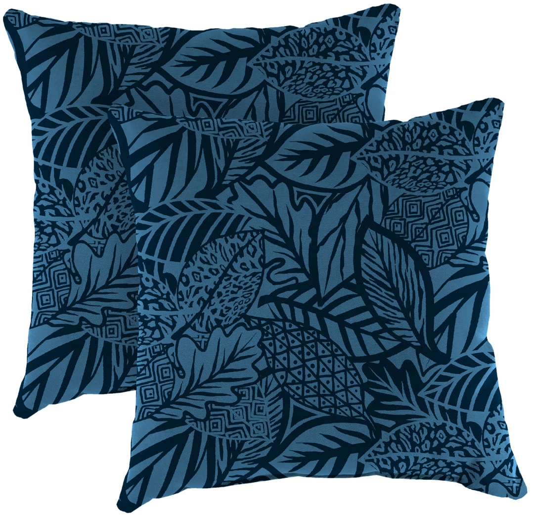 Add a touch of color to your outdoor seating area with this set of 2 Outdoor Throw Pillows from Jordan Manufacturing. Crafted from a quick-drying, UV- and water-resistant fabric, these outdoor pillows withstand sun exposure and the elements to last for the seasons to come. Stuffed with hypoallergenic polyester fiber fill for an extra cushy and soft experience while relaxing. From elaborate dining spaces to cozy three-season porches, these fiber-filled throw pillows boosts your space with carefree, laid-back style and total comfort.