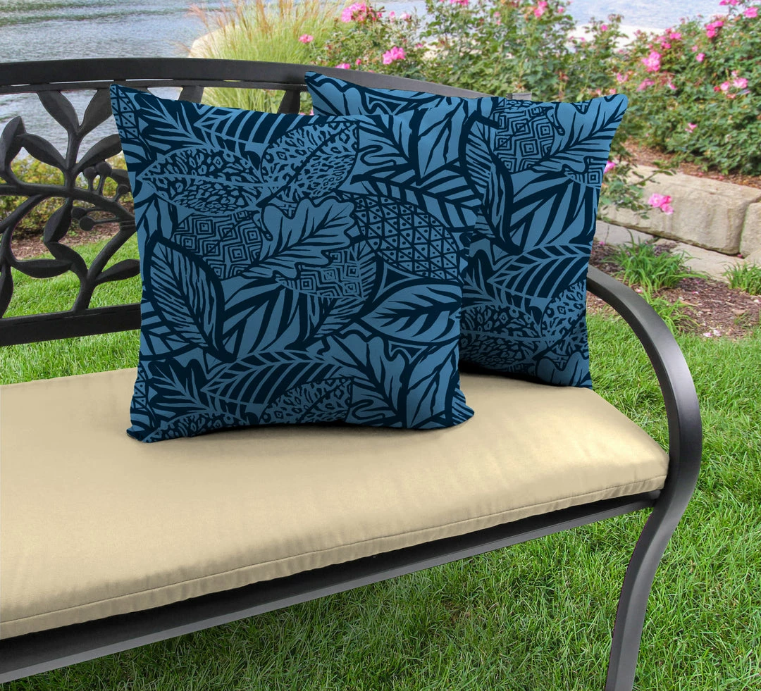 Outdoor Knife Edge 16″ Throw Pillows; Sold in Sets of 2; UV protection allows pillow to withstand up to 500 hours of direct sunlight; Filled with dense hypoallergenic spun polyester fiber; Weather resistant polyester fabric that is engineered to withstand mold, mildew, & stains; Overall dimensions: 16Wx16Lx5H