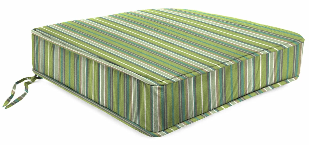 Refresh your outdoor seating arrangement with the comfort and style of this Boxed Edge Outdoor Deep Seat Cushion from Jordan Manufacturing. Covered with a soft fabric and filled with high-density fiber material, the deep-seat cushion is specially designed to keep you lounging comfortably on your favorite patio chair. Crafted from fade-, UV-, water- and stain-resistant fabric to withstand the elements and maintain the quality of your cushions over time Bringing a stylish look to help enhance your patio, deck, or pool area.