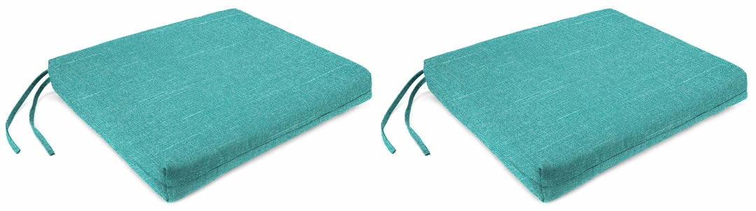 Bring optimal comfort to your patio chairs with the French Edge Seat Cushion from Jordan. Sold in sets of 2, these cushions are made with weather-, water-, fade- and UV-resistant fabric for ultimate durability and long-lasting use. They are stuffed with hypoallergenic polyester fiber fill for an extra cushy and soft experience while relaxing. Ties along the sides add convenience while ensuring the cushions stay in place when you’re sitting down. From elaborate dining spaces to cozy three-season porches, these fiber-filled cushions boosts your space with carefree, laid-back style and total comfort.