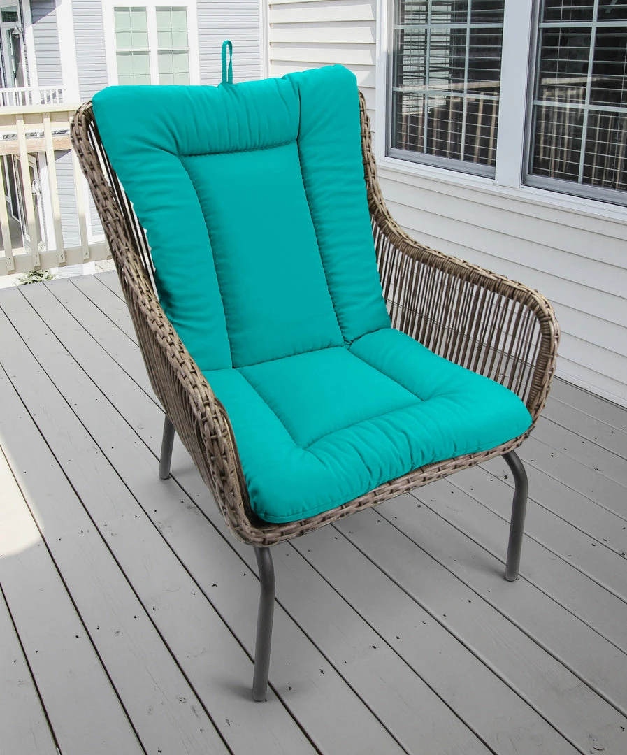 Revitalize your outdoor seating area with this Knife-Edge Euro Style Dining Chair Cushion from Jordan Manufacturing. Showcasing knife-edge detailing, this outdoor chair cushion will liven up any outdoor porch or patio area. A matching set of ties secures this outdoor chair cushion for the right fit on your furniture while you sit, eat and relax. Solution dyed woven material makes for a high-performance fabric with its weather-, fade- and water-resistant qualities, making for the perfect piece to put outdoors.
