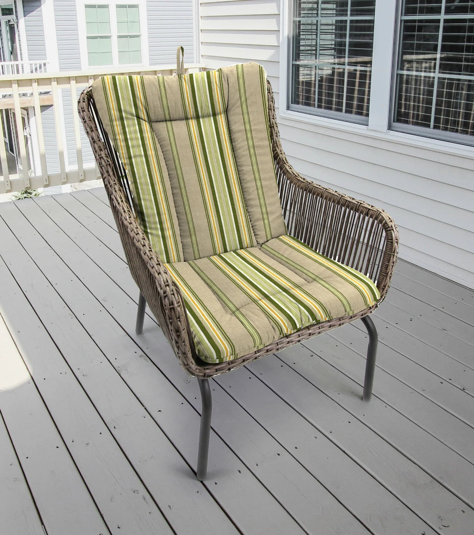 Revitalize your outdoor seating area with this knife-edge Euro style dining chair cushion from Jordan Manufacturing. Showcasing knife-edge detailing, this outdoor chair cushion will liven up any outdoor porch or aptio area. A matching set of ties secures this outdoor chair cushion for the right fit on your furniture while you sit, eat and relax. 100% polyester material makes for a high-performance fabric with its weather-, fade- and water-resistant qualities, making for the perfect piece to put outdoors.