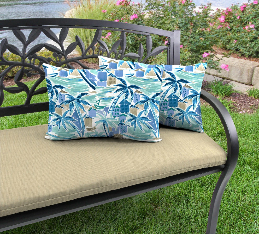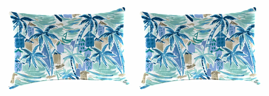 Add a touch of color to your outdoor seating area with this set of 2 Outdoor Lumbar Throw Pillows from Jordan Manufacturing. Crafted from a quick-drying, UV- and water-resistant fabric, these outdoor pillows withstand sun exposure and the elements to last for the seasons to come. Stuffed with hypoallergenic polyester fiber fill for an extra cushy and soft experience while relaxing. From elaborate dining spaces to cozy three-season porches, these fiber-filled throw pillows boosts your space with carefree, laid-back style and total comfort.