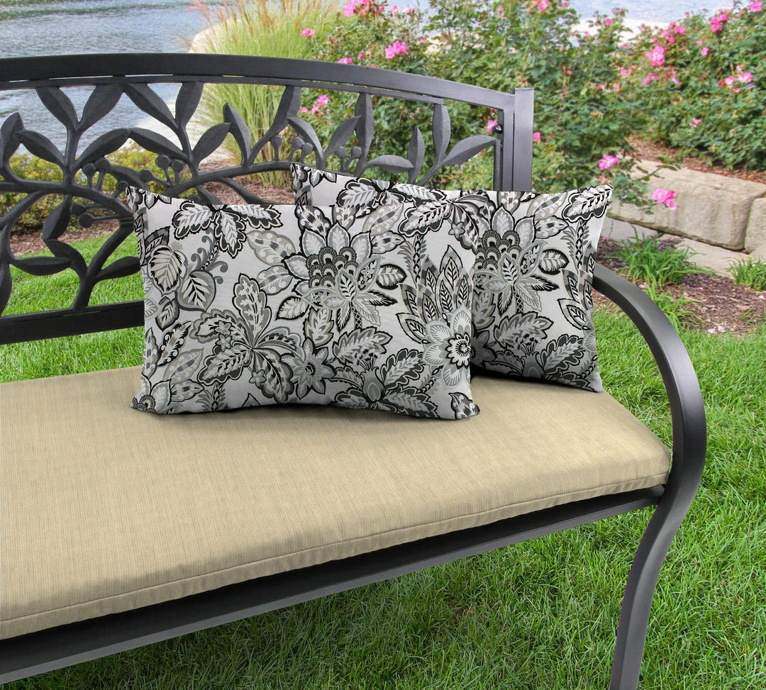 Add a touch of color to your outdoor seating area with this set of 2 Outdoor Lumbar Throw Pillows from Jordan Manufacturing. Crafted from a quick-drying, UV- and water-resistant fabric, these outdoor pillows withstand sun exposure and the elements to last for the seasons to come. Stuffed with hypoallergenic polyester fiber fill for an extra cushy and soft experience while relaxing. From elaborate dining spaces to cozy three-season porches, these fiber-filled throw pillows boosts your space with carefree, laid-back style and total comfort.