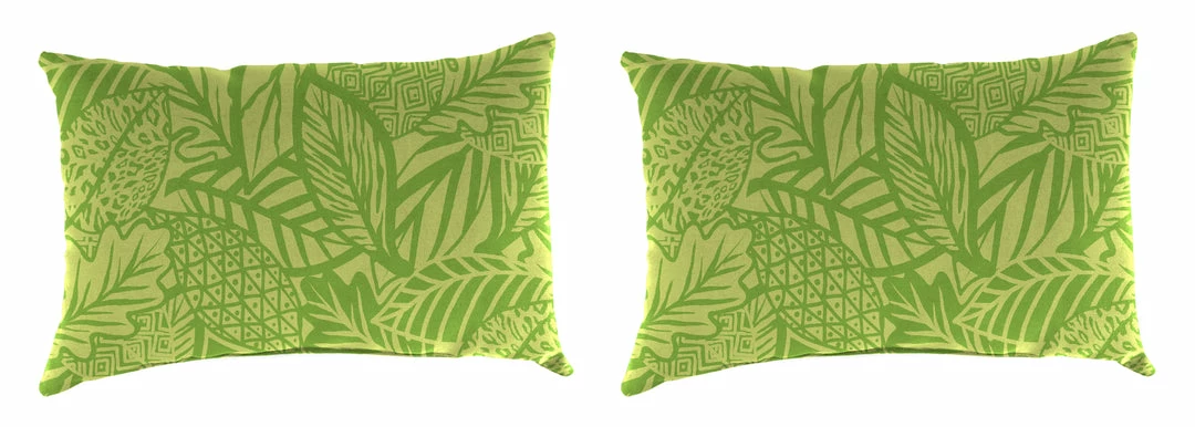 Add a touch of color to your outdoor seating area with this set of 2 Outdoor Lumbar Throw Pillows from Jordan Manufacturing. Crafted from a quick-drying, UV- and water-resistant fabric, these outdoor pillows withstand sun exposure and the elements to last for the seasons to come. Stuffed with hypoallergenic polyester fiber fill for an extra cushy and soft experience while relaxing. From elaborate dining spaces to cozy three-season porches, these fiber-filled throw pillows boosts your space with carefree, laid-back style and total comfort.