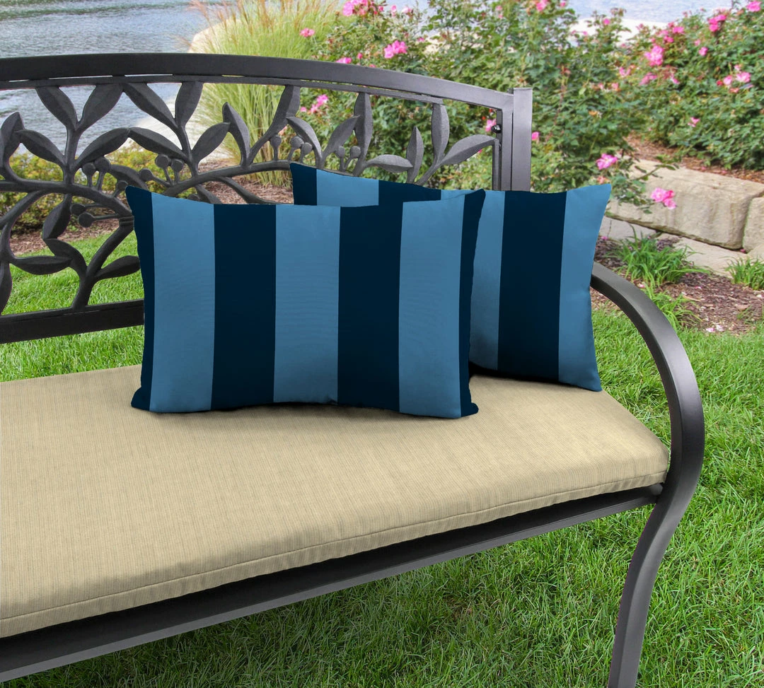 Add a touch of color to your outdoor seating area with this set of 2 Outdoor Lumbar Throw Pillows from Jordan Manufacturing. Crafted from a quick-drying, UV- and water-resistant fabric, these outdoor pillows withstand sun exposure and the elements to last for the seasons to come. Stuffed with hypoallergenic polyester fiber fill for an extra cushy and soft experience while relaxing. From elaborate dining spaces to cozy three-season porches, these fiber-filled throw pillows boosts your space with carefree, laid-back style and total comfort.