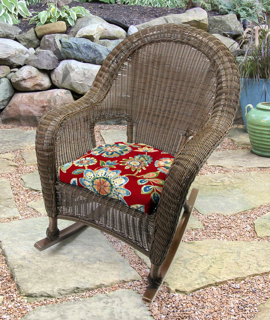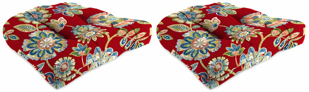 Outdoor Knife Edge Wicker seat cushion; Sold in Set of 2; UV protection allows cushion to withstand up to 500 hours of direct sunlight; Filled with dense hypoallergenic spun polyester fiber; Weather resistant polyester fabric that is engineered to withstand mold, mildew, & stains; Overall dimensions: 18Wx18Lx4H