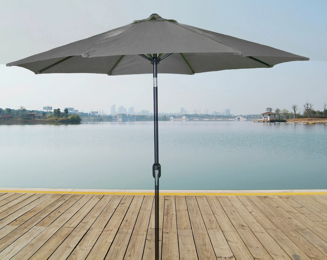 Enjoy time outdoors out of the sun with our attractive and colorful 9 foot steel market umbrella. Made with Spun polyester fabric to prolong the life of your outdoor umbrella. Engineered to Resist Fading, Mildew & Stains. Comes equipped with easy hand crank and can tilt up to 45 degrees.
